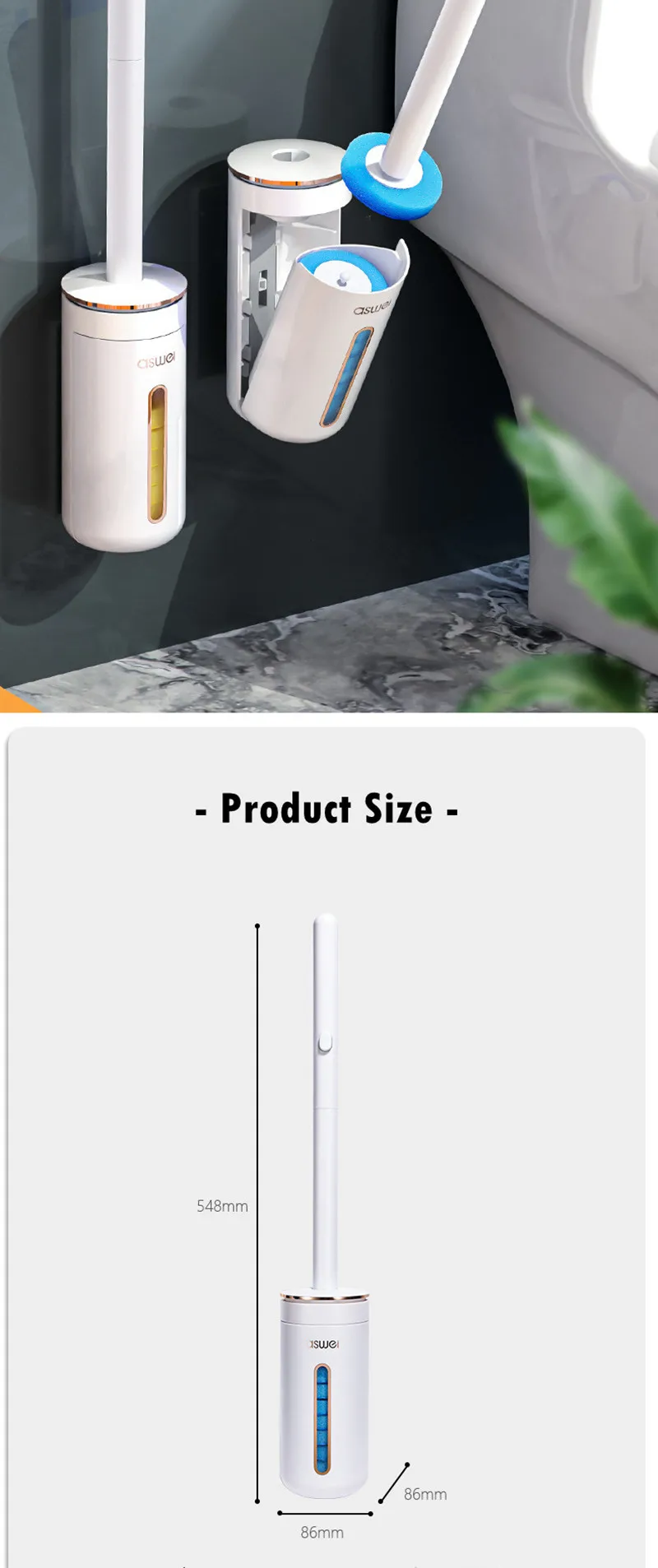 Set 1: 1*Toilet brush shell+8pcs ocean heads+1* wall sticker