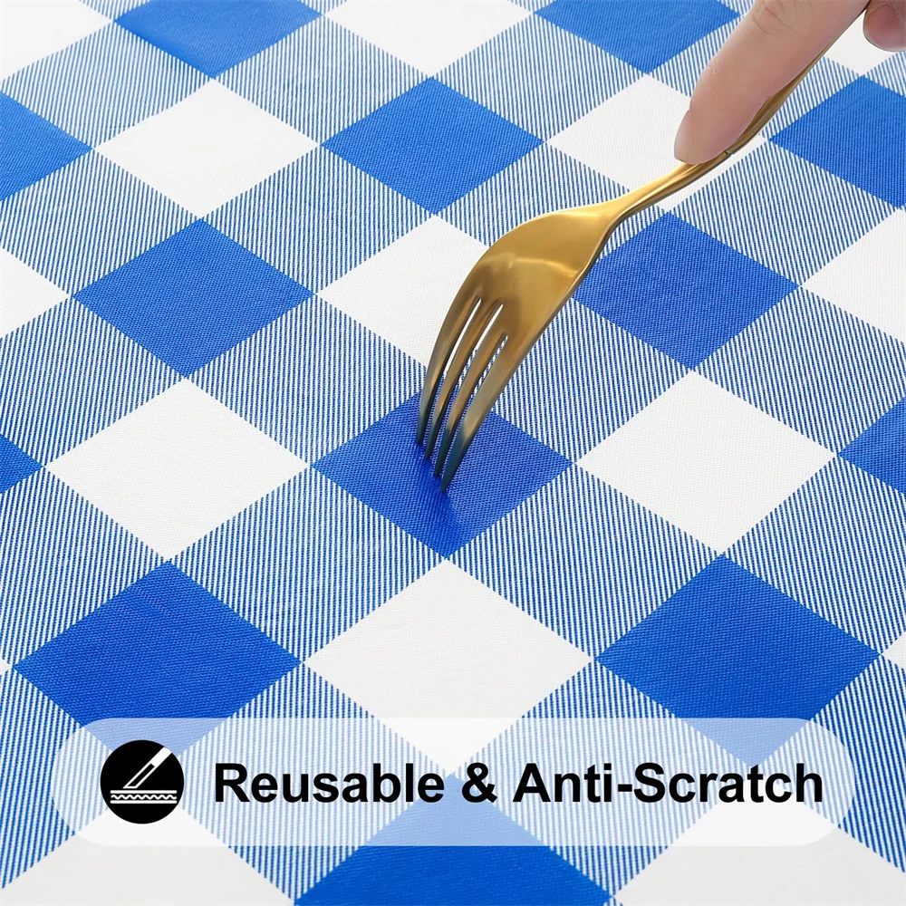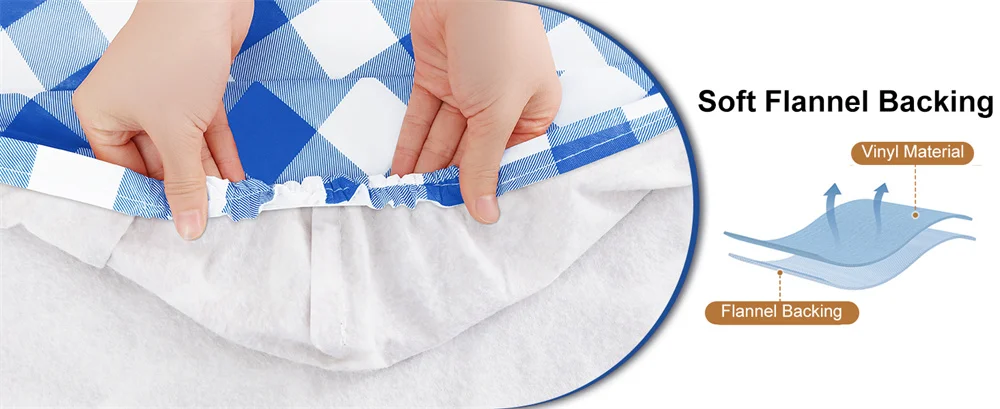 Olanly table covers are made from thick vinyl and soft flannel backing, which give you durability and protect your oblong table from scratches, stains, and sun rays.