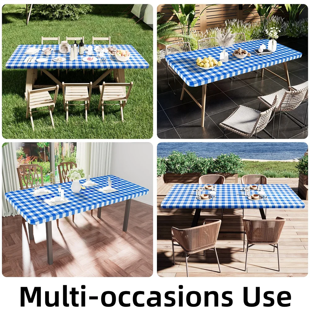 Olanly Rectangle Vinyl Table Cover Stretch Waterproof Table Covers Fitted Tablecloth For Home Party Camping Table Cloth Outdoor
