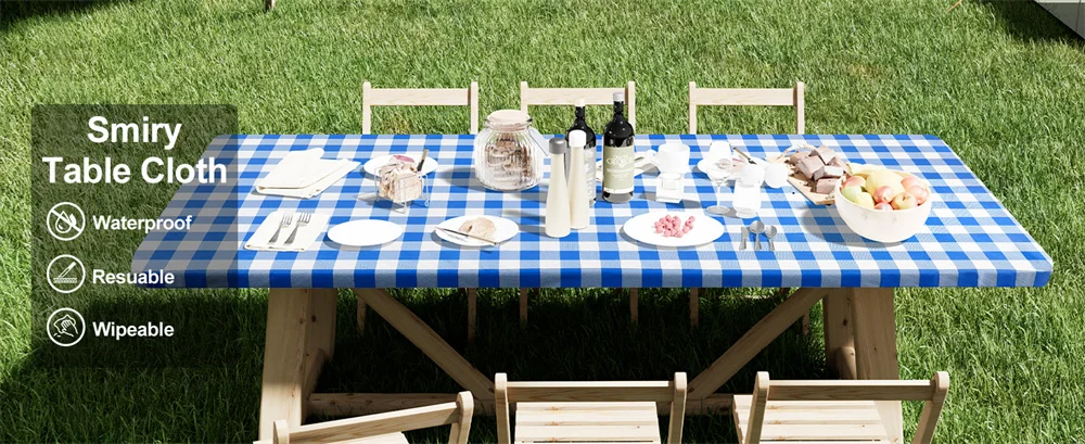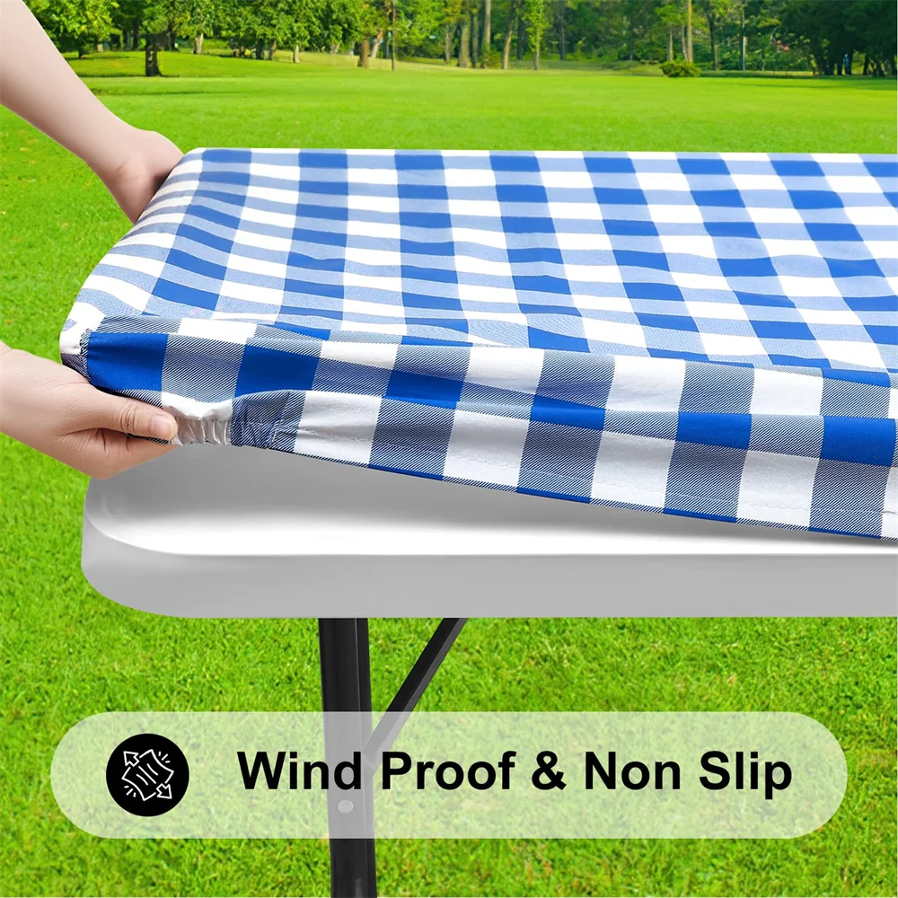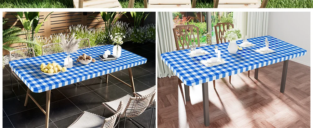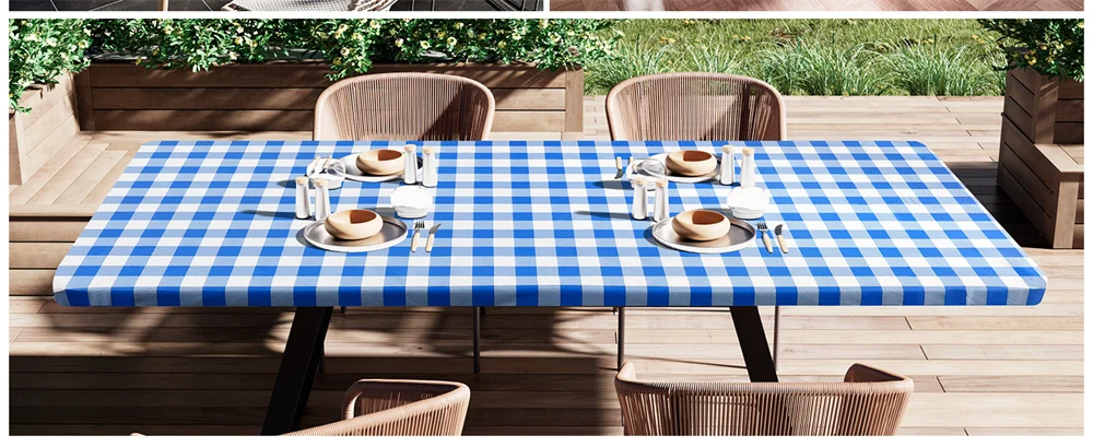 The table cloth with elastic edge design allows the cover to fit ideally on the rectangle folding table. The fitted tablecloth will not move, whether it is accidentally pulled or a gust of wind blows in to interfere with your pleasant dinner.