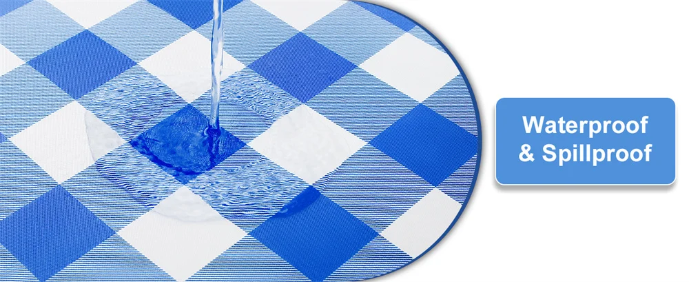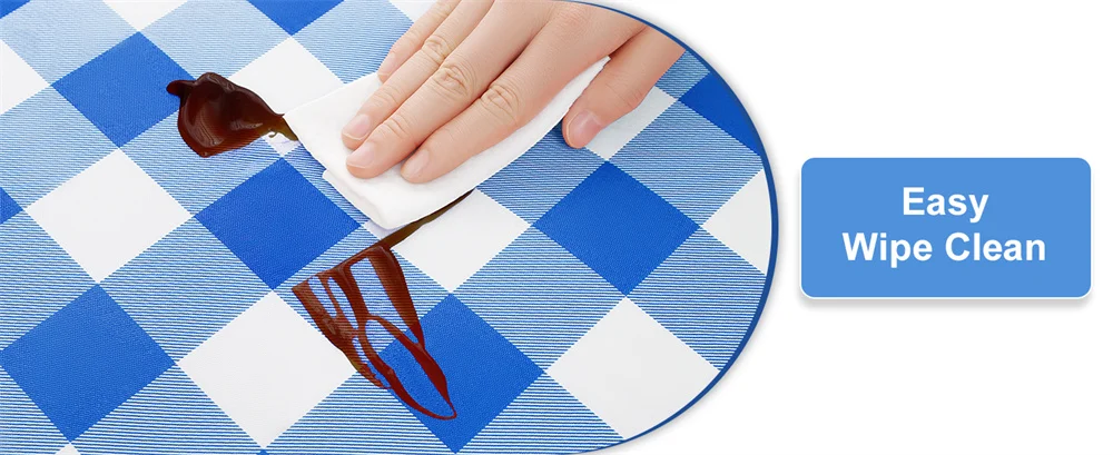 The tablecloths are waterproof in design to keep water, milk, sauces, oil and food scraps from seeping into the table top. No hand or machine washing is required, simply wipe the stain off with a rag or paper towel.