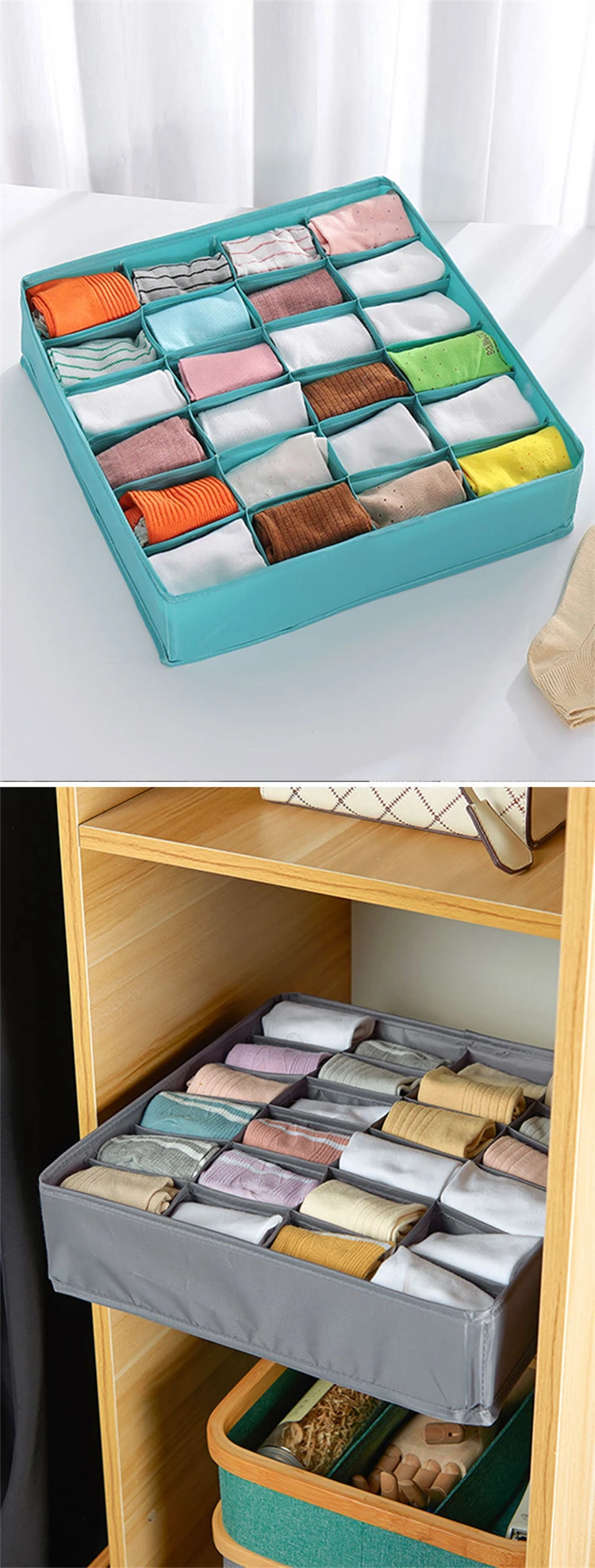 BeluvedBond® 24 Grid Foldable Underwear Storage Box, 1 Count Cabinet Drawer Underwear Storage Box, Multifunctional Storage Box for Home Bedroom, Closet Organizer